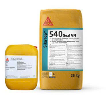 SikaTop®-540 Seal VN là vữa chống thấm hai thành phần gốc xi măng – polymer, dùng để tạo lớp phủ bảo vệ và chống thấm cho bê tông, vữa, tường, sàn mái, bể nước… Sản phẩm có độ bám dính cao, dễ thi công bằng chổi hoặc bay, mang lại bề mặt bền chắc và chống thấm hiệu quả lâu dài.
